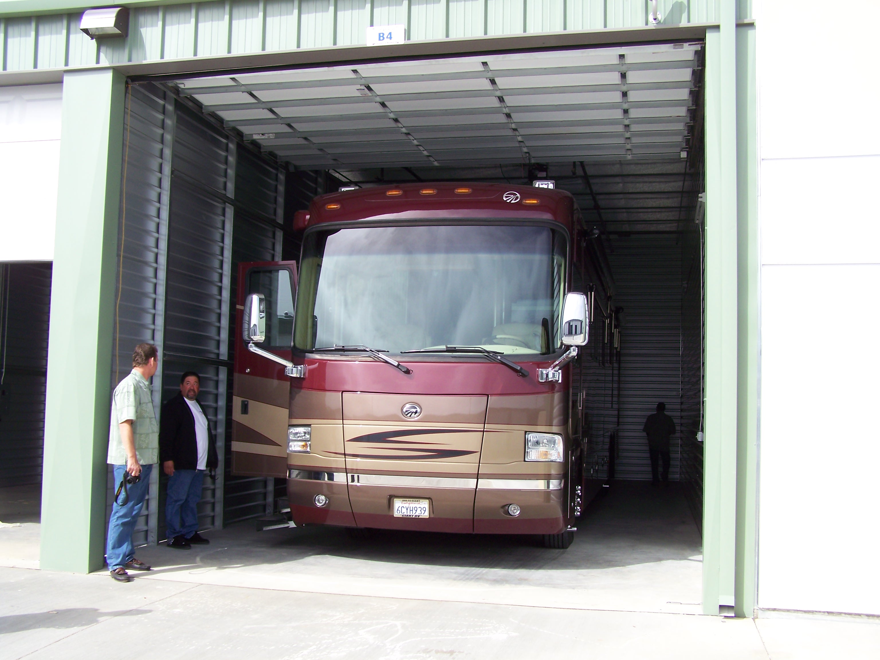 Fully Enclosed Boat and RV Storage Building. This is basically a large garage that is secure and may be accessed only by the renter. The unit is typically 15 feet wide by 45 to 50 feet deep, each with a 12-by-14-foot door. The door must be this size to accommodate the largest RV on the road. The cost to build this type of structure is more expensive per square foot than traditional self-storage because the buildings require more structure to support the large door. A power operator is also commonly used to operate this large door.